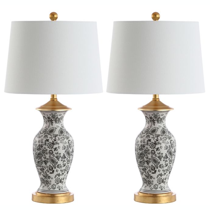 Safavieh Kaeden Table Lamp In Black White With Fabric Lamp Shade