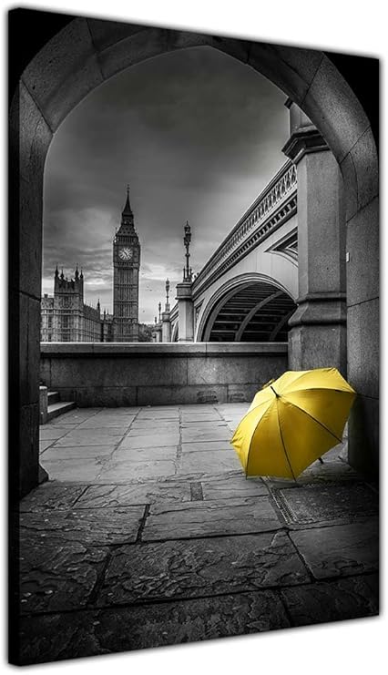 Black And White Big Ben Photo With Yellow Umbrella City Prints