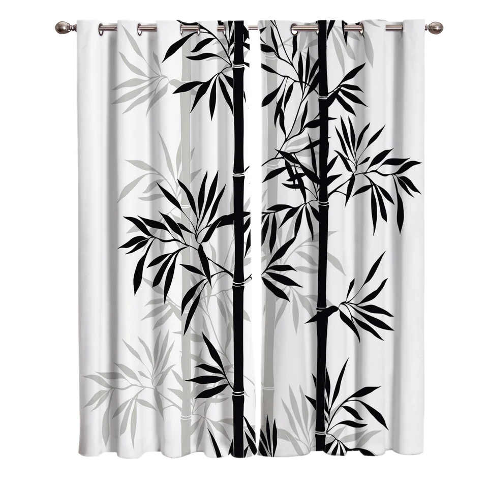 Black White Bamboo Chinese Style Ink Leaf Plant Window Treatments