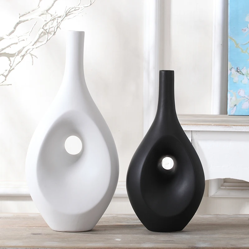 2016 White Black Ceramic Creative Contracted Flower Vase Pot Home