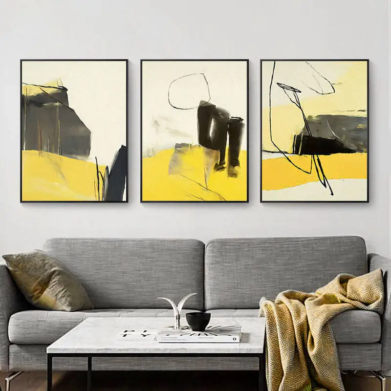 Abstract Paintings 3 Piece Art Black Yellow Canvas Art Wall