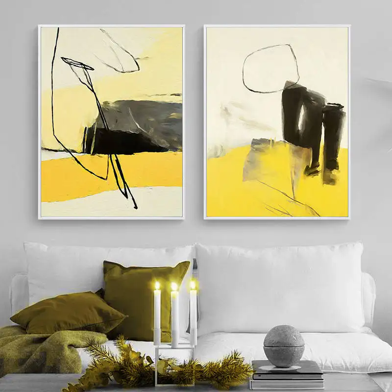 Nordic Minimalist Creative Imagine Black Yellow Canvas Painting