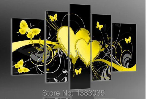 Handemade Oil Painting 5 Piece Love Heart Butterfly On The Wall