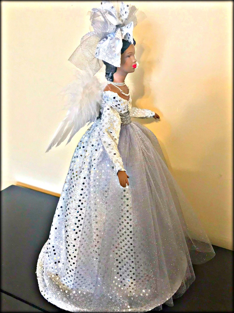 Silver Christmas Angel Tree Topper African American Ooak Black