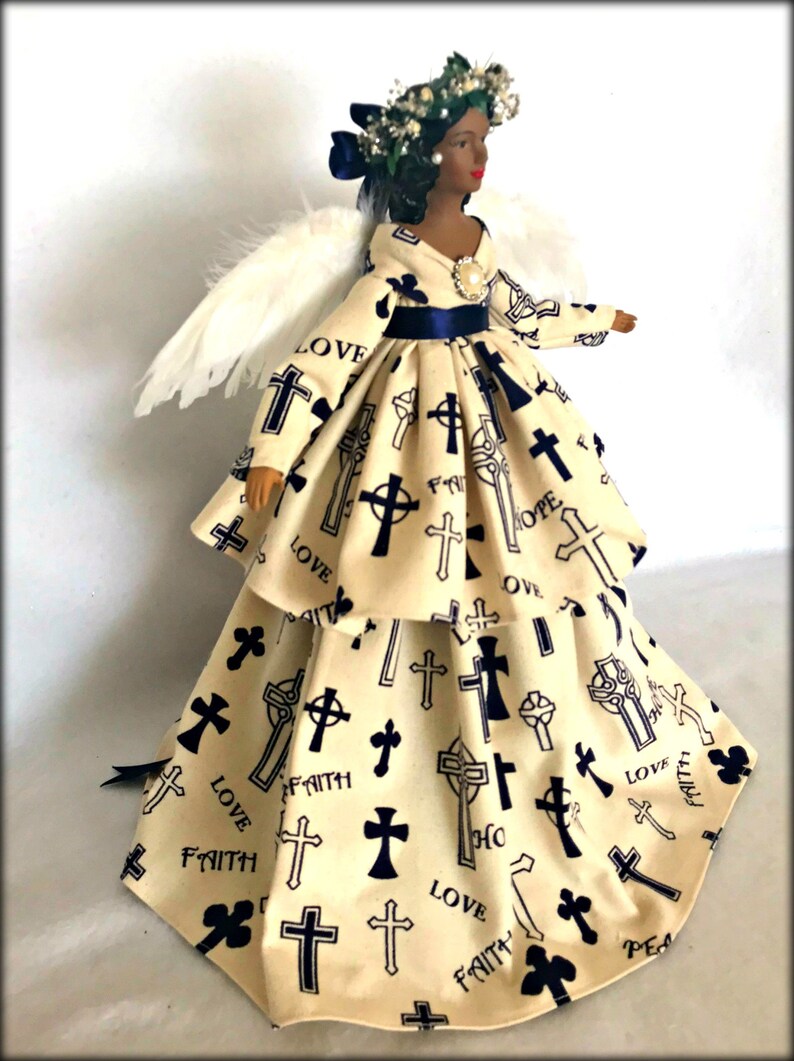 African American Angel Tree Topper Afrocentric Handcrafted Black