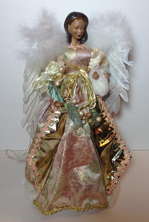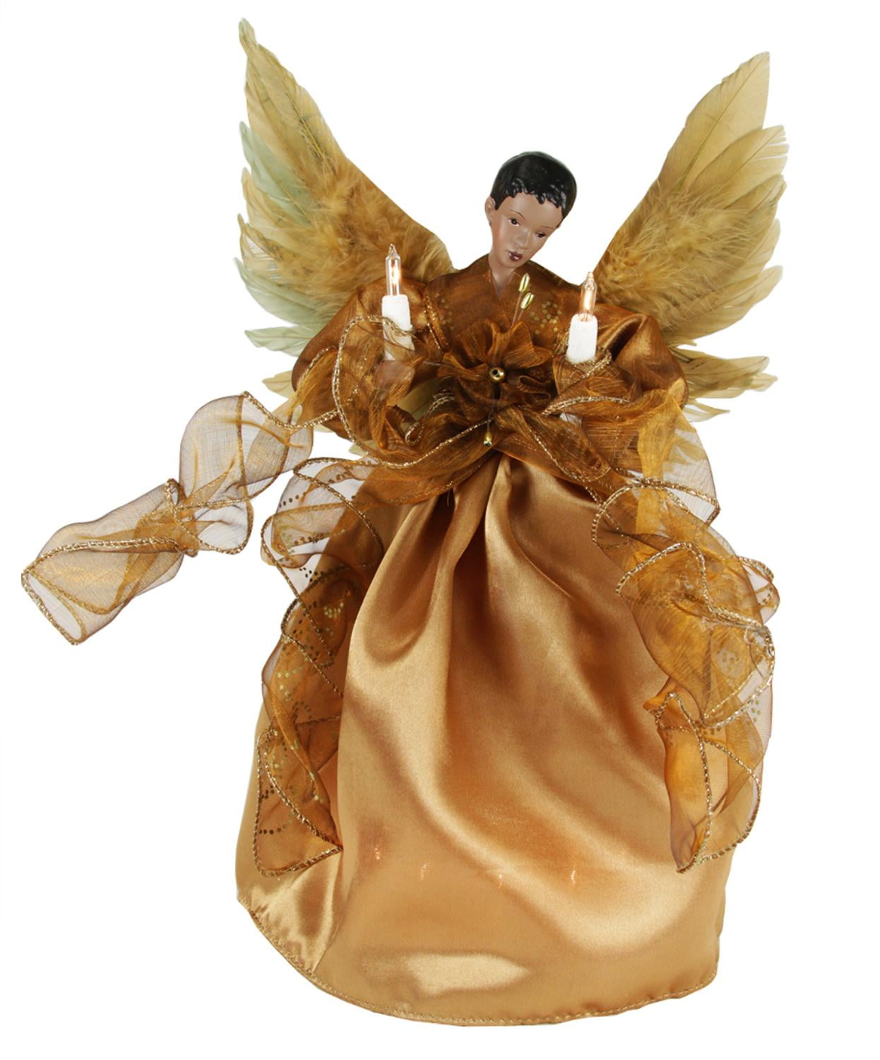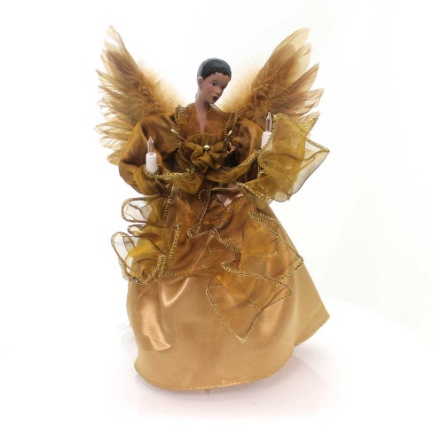 African American Angel Christmas Tree Topper Elegant Gold Gown