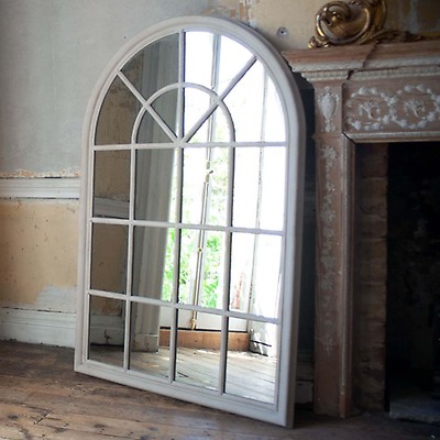 White And Black Wood Windowpane Arch Wall Mirror Kirklands