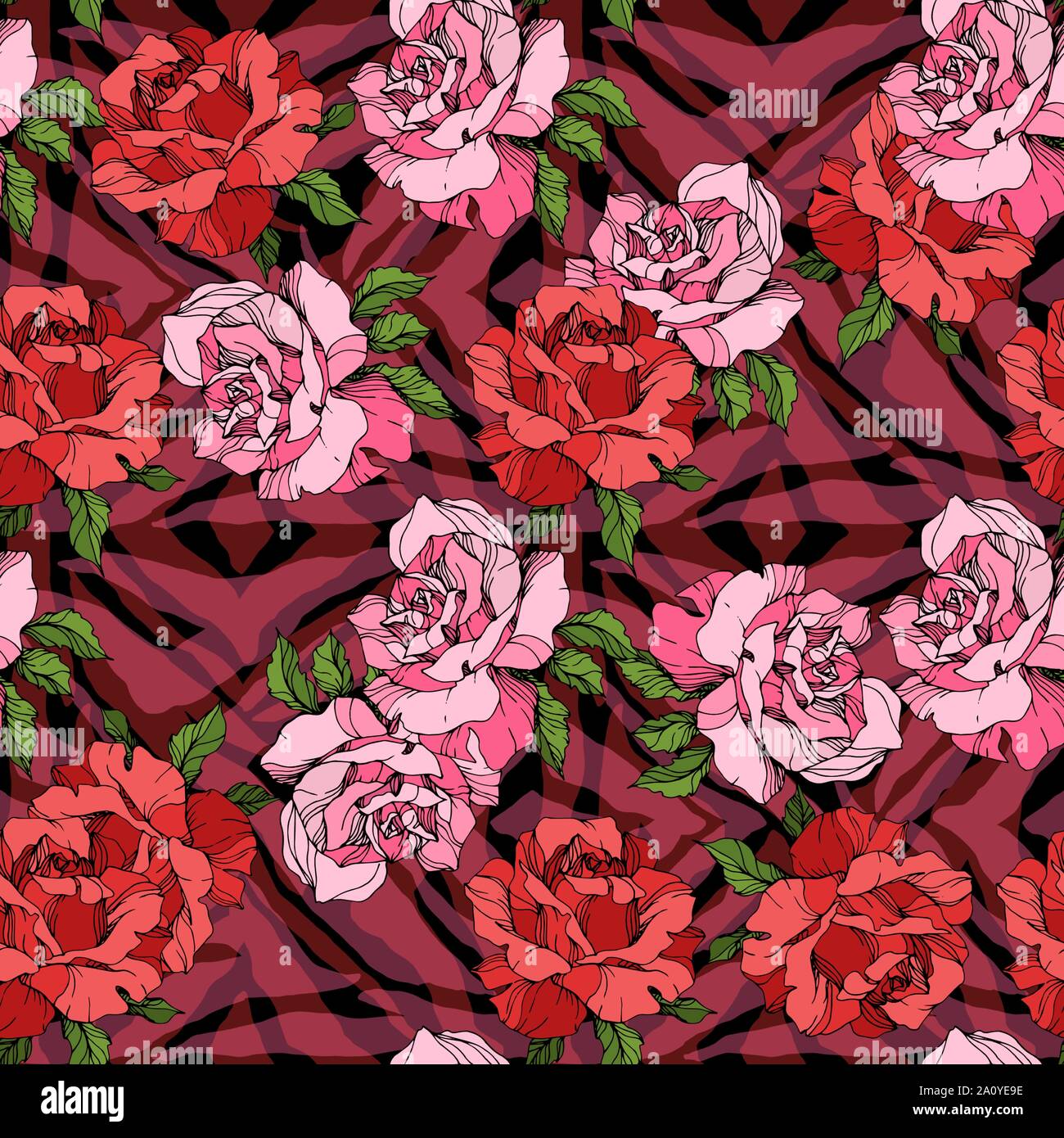 Vector Exotic Zebra Print With Floral Botanical Flowers Black And