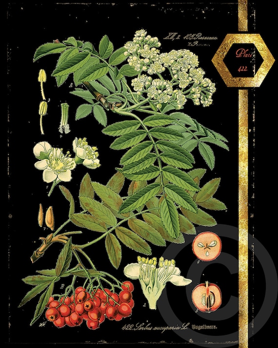 Rare German Botanical Print Black Botanical Wall Art Botanical