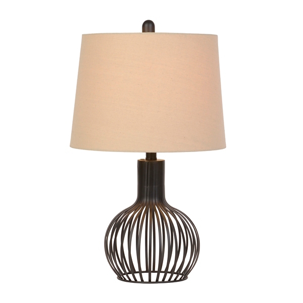 Merra 18 In Black Cage Table Lamp With Oatmeal Linen Shade Set
