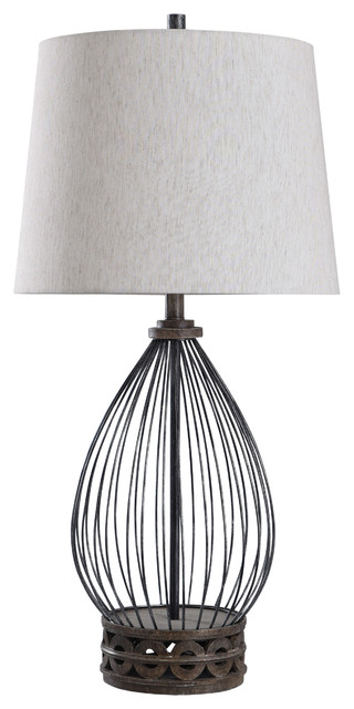 Urban Modern 31 Rustic Black Metal Cage Table Lamp Beige Linen