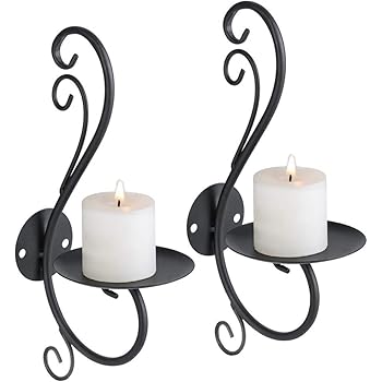 2 Pcs Black Metal Candle Holders Wall Candle Holders Wall Hanging