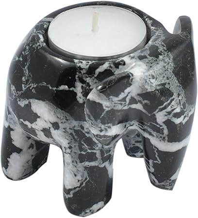 British Fossils 3 Marble Elephant Tea Light Candle Holder Black
