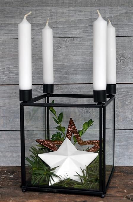 Candle Holder With 4 Candles Metal Dice Cube Black Square Glass