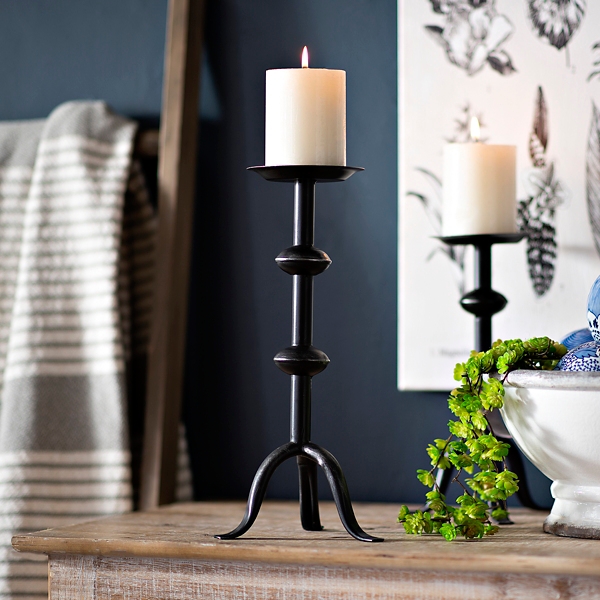 Black Hand Forged Metal Candle Holder Large Black Candle