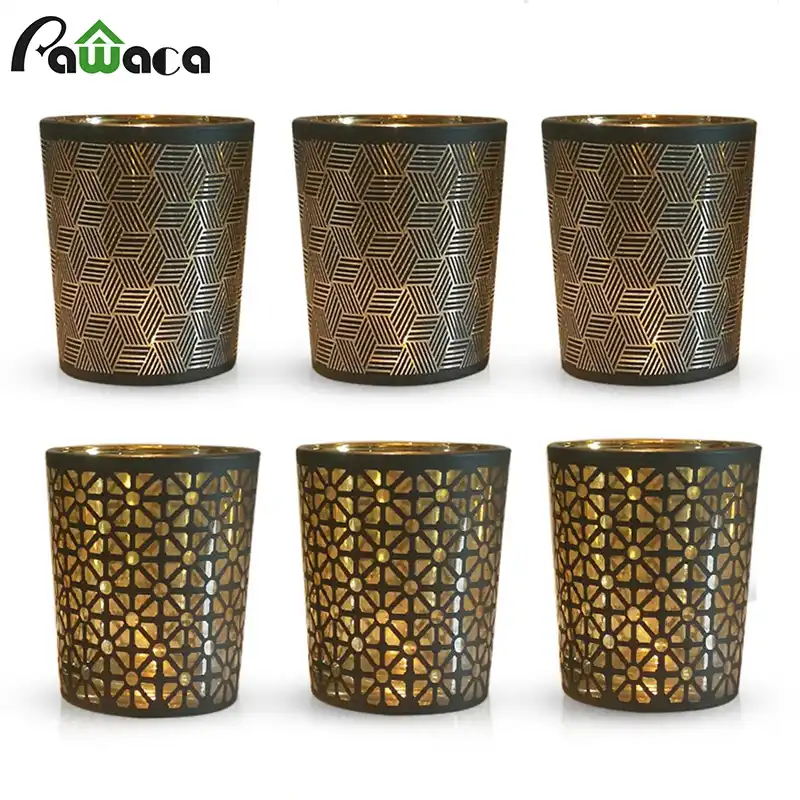 6pcs Votive Glass Candles Holder Set Black Gold Lattice Line Style