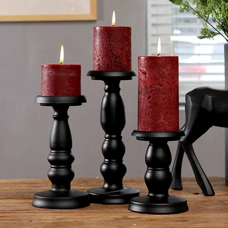 Set Of 3 Pillar Candle Holders Retro Classic Iron Centerpieces