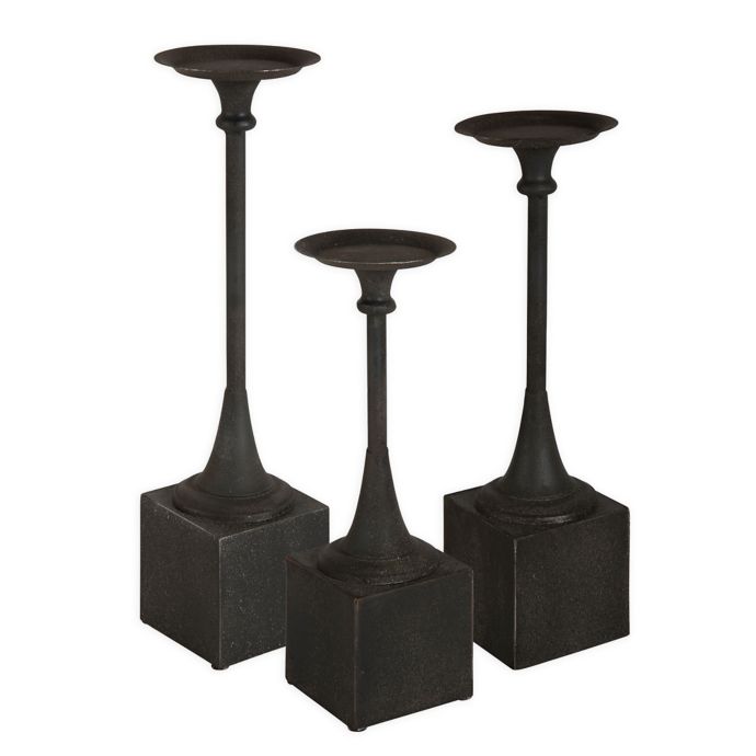 Kate And Laurel 3 Piece Bedrick Candlestick Set In Black Bed