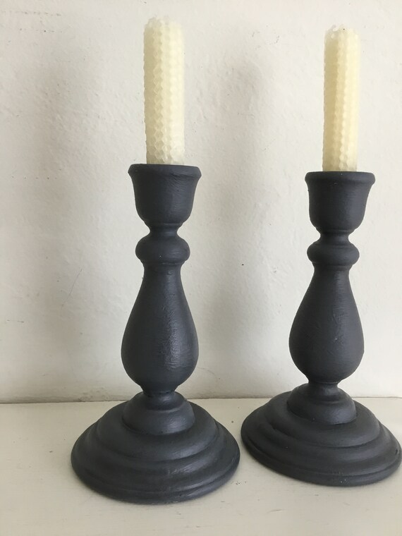 Wooden Candlestick Holders Painted Black Primitive Style Black