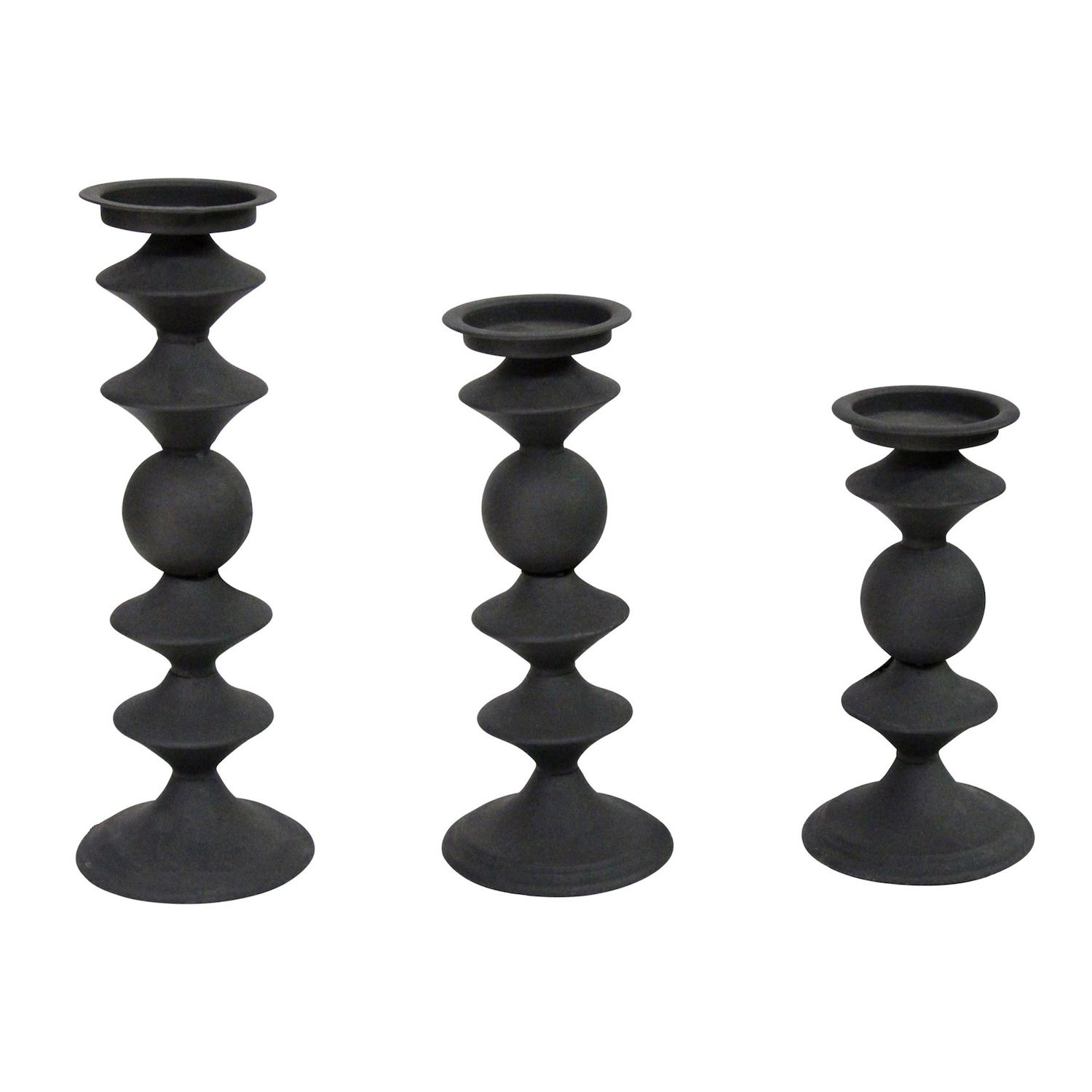 Stratton Home Decor Set Of 3 Modern Matte Black Metal Candlestick