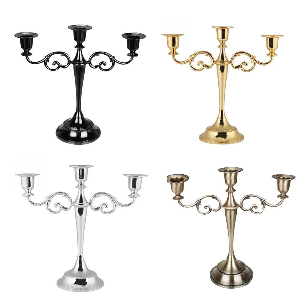 3 Arms Silver Gold Bronze Black Candle Holders European