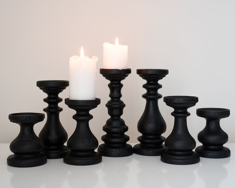 Vintage Style Black Wooden Candlesticks Pillar Candle Holders 10