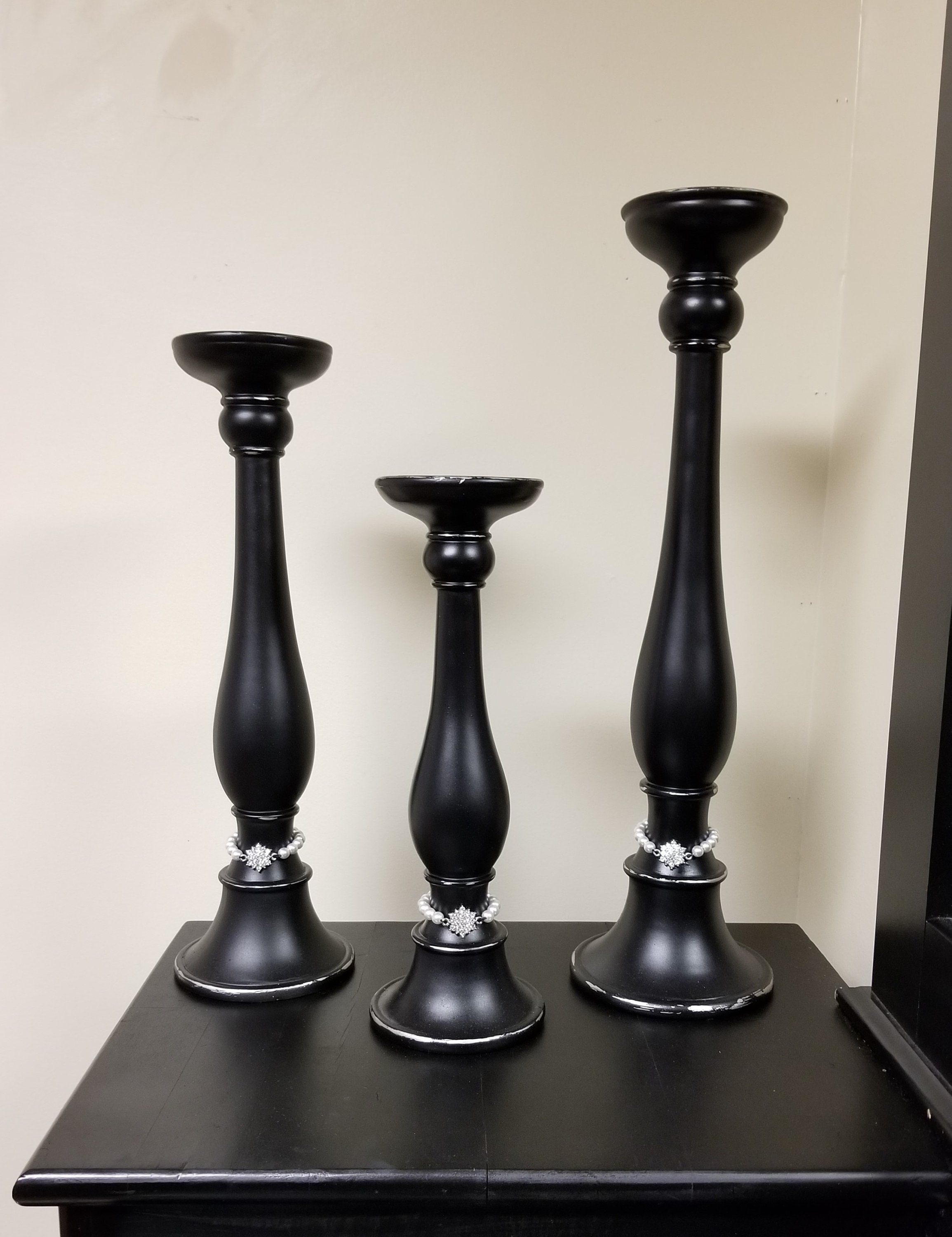 3 Large Black Candlesticks Candle Holders Victorian Gothic Etsy