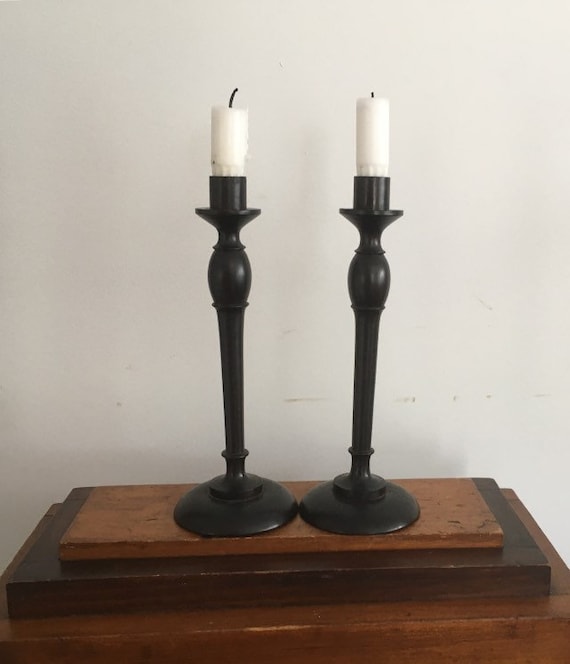Brass Candlesticks Black Candlestick Holders Black Brass Etsy
