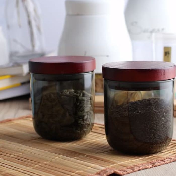 Novare Glass Storage Jar Sealed Canister With Wooden Lid Silicon