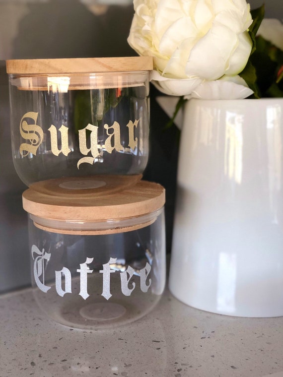 Personalised Glass Canisters Black Canisters With Wood Lid Etsy