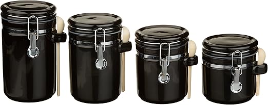 Black Anchor Hocking 4 Piece Ceramic Canister Set With Clamp Top