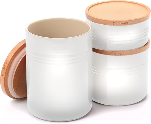 Amazon Com Le Creuset Pg1518 1431 Stoneware Canister With Wood