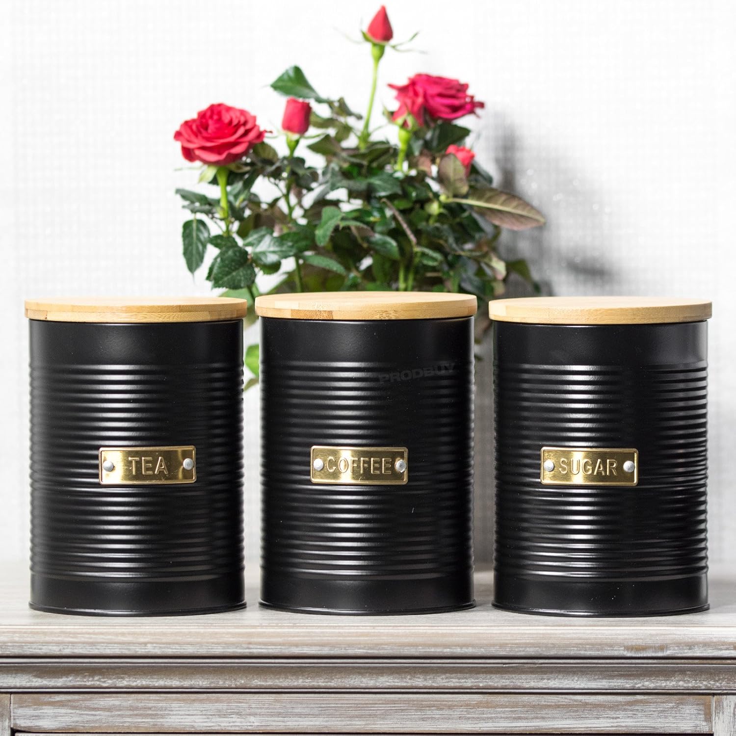 Black Tea Coffee Sugar Storage Canisters With Wooden Lids Amazon