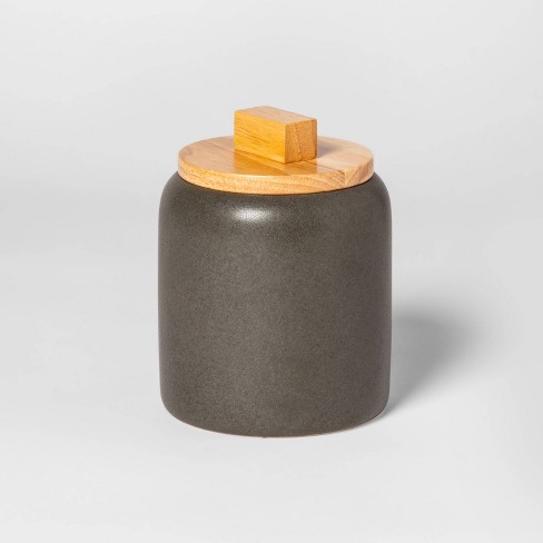 Black Stoneware Canister With Wood Lid Kate Marker Home