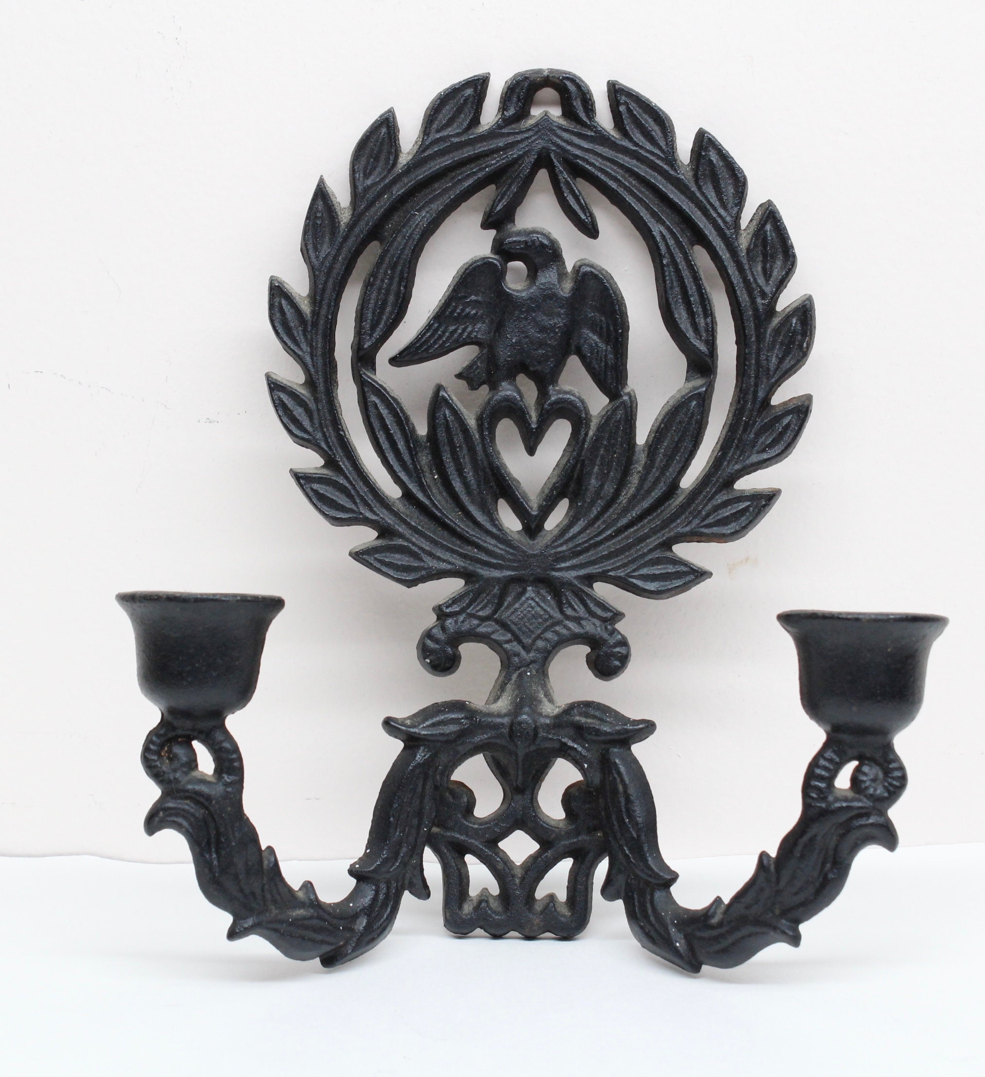 Antique Black Cast Iron Eagle Wall Mounted Candle Holders Etsy