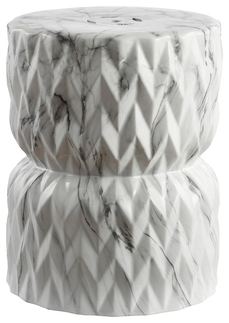 Chevron Drum 17 5 White Marble Finish Ceramic Garden Stool