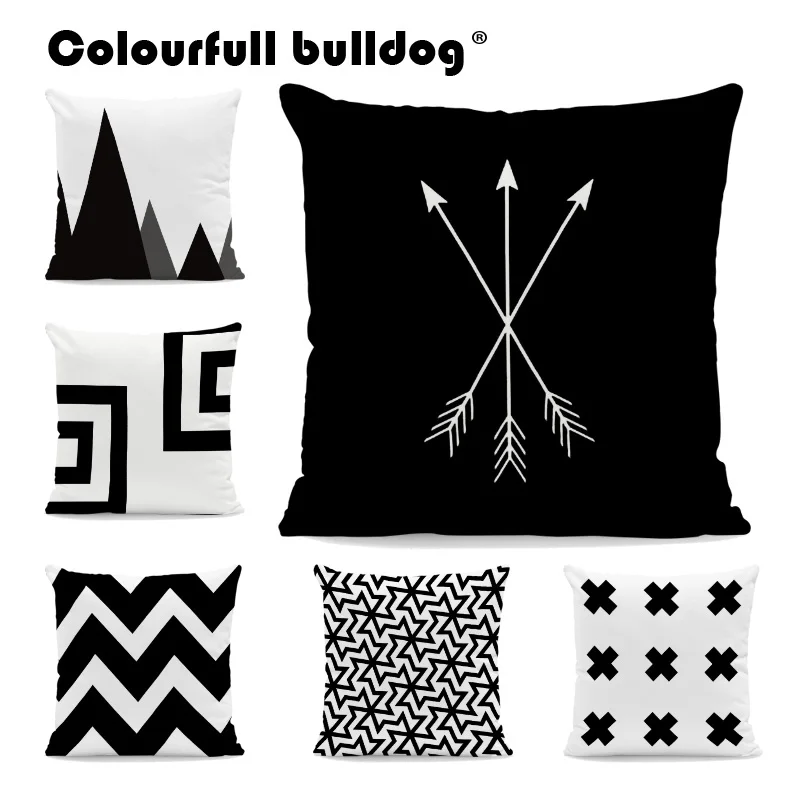 Black White Geometric Cushion Cover Home Decor Velvet Map Arrow