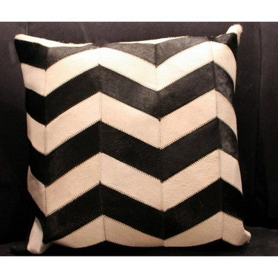Madisons Inc Black White Chevron Stripe Cow Hide Pillow