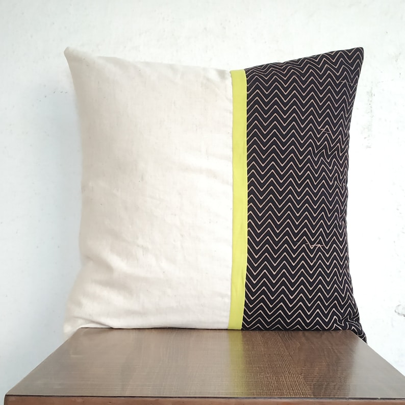 Black Chevron N Ivory Block Print Cushion Block Print Black Etsy
