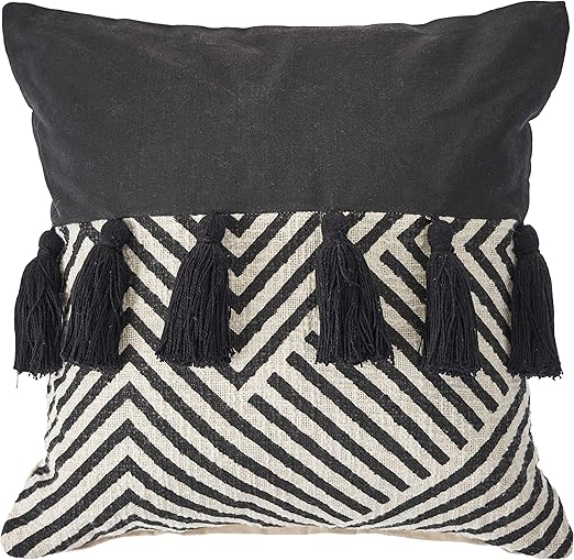 Lr Home Chevron Black Cream Tufted Grid Soft Poly Fill 20 In X
