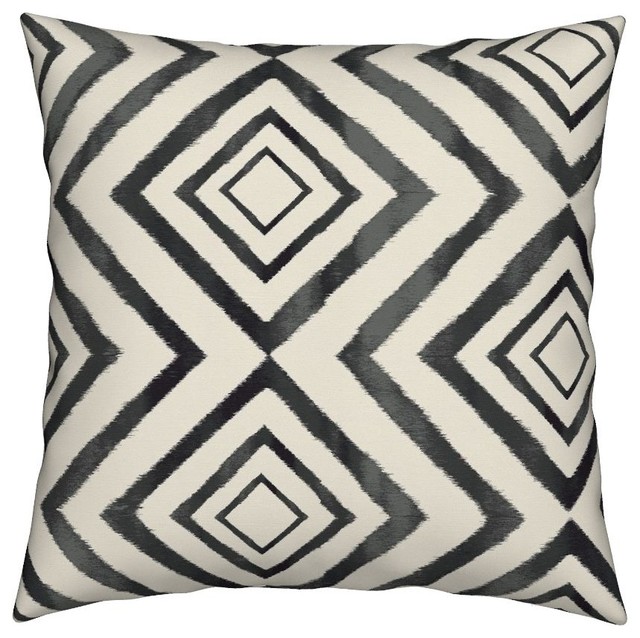 Ikat Chevron Geometric Black And White Diamond Throw Pillow