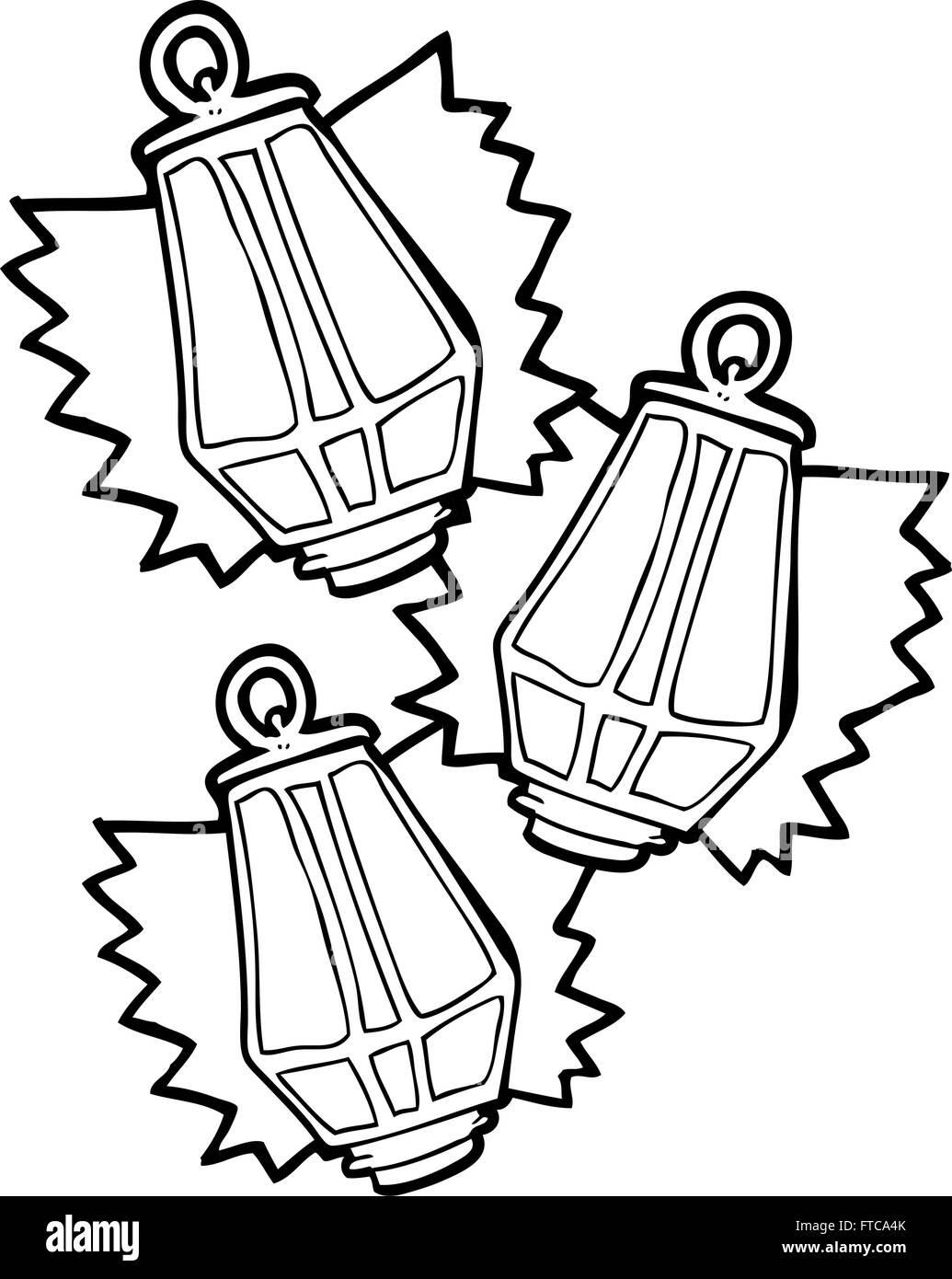 Black And White Cartoon Christmas Lanterns Stock Vector