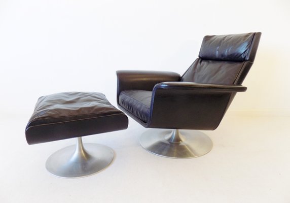 Black Leather F585 Lounge Chair Ottoman By Geoffrey Harcourt For