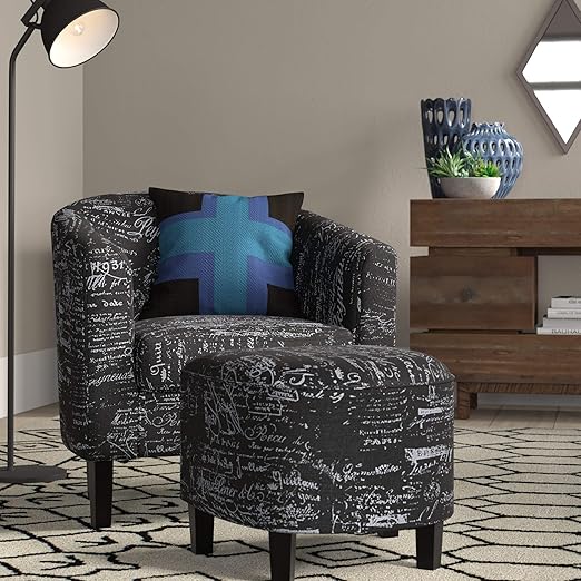 Accent Chair W Ottoman Round Arms Curved Back French Print Script
