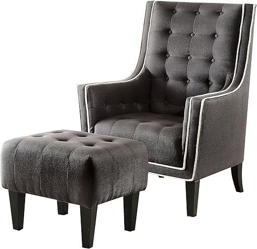Black Button Tuft Accent Wing Chair And Ottoman Victorian