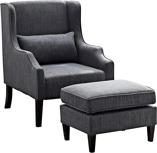 Decor Rest Living Room Black Chair With Ottoman Razor Black