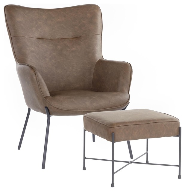 Izzy Industrial Lounge Chair Ottoman Set Black Metal Espresso