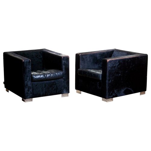 Pair Of Scandinavian Modern Black Leather Club Armchairs 1970s 126710
