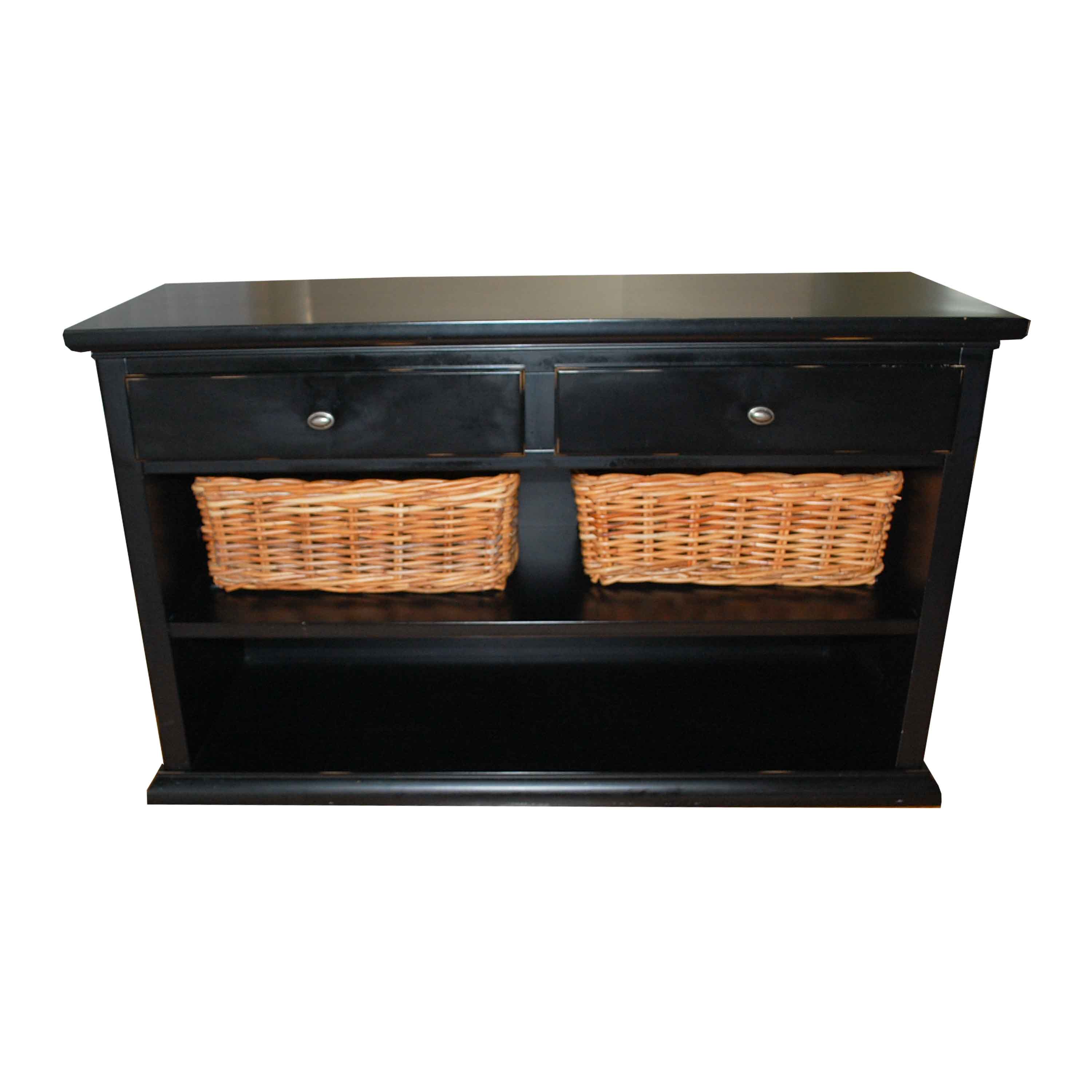 Pottery Barn Black Wood Console Table With Baskets Vendido En Long