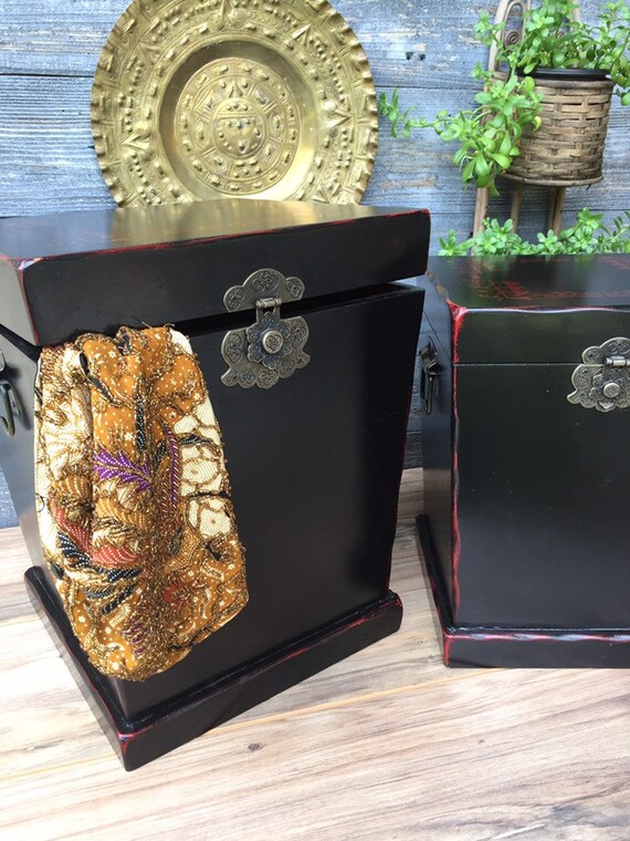 Black Accent Table Set Nesting Chests Stacking Plant Stand Etsy